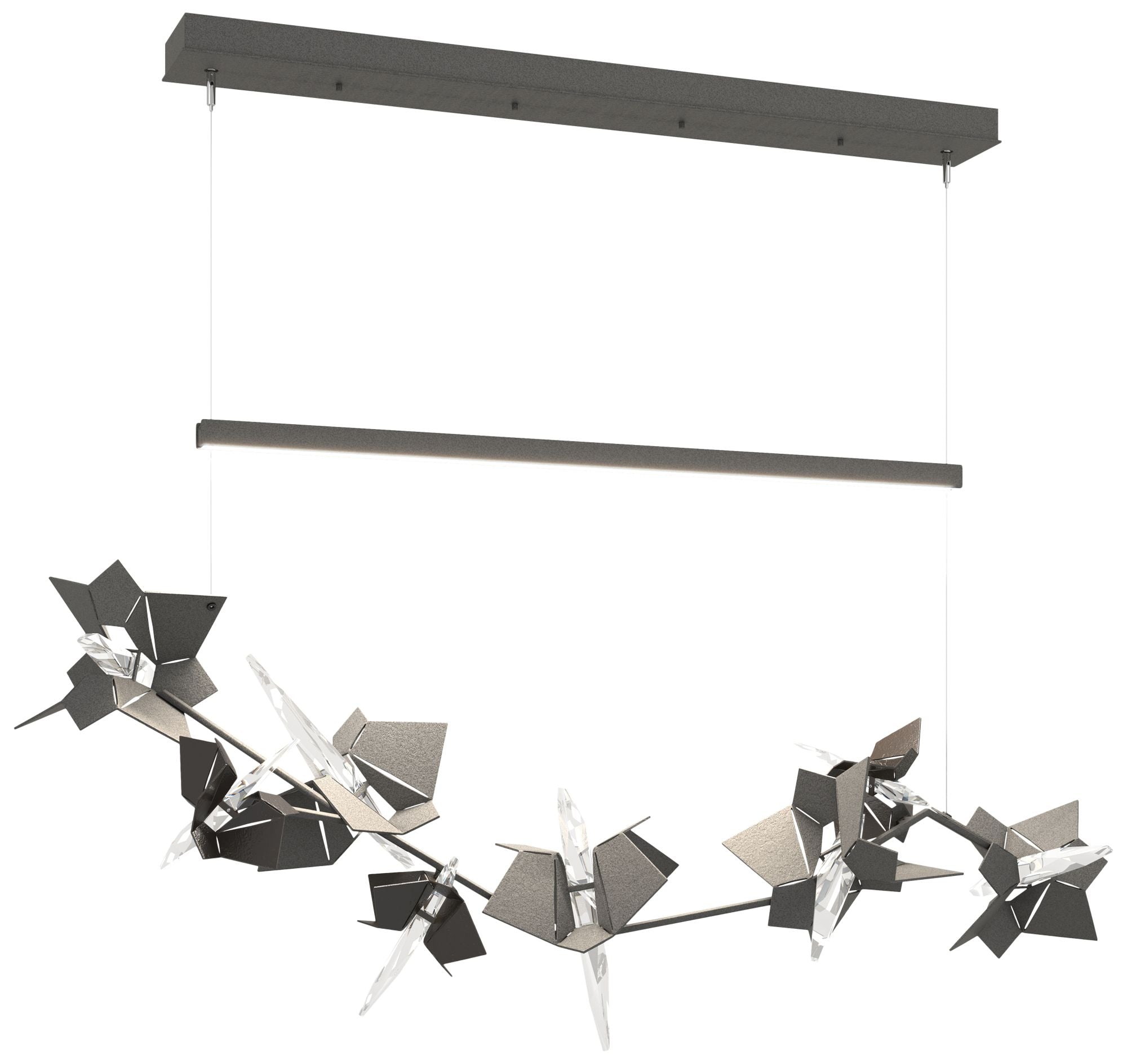 - Three-tier twenty-light teardrop chandelier with an organic tree branch look. A handcrafted, modern chandelier from the John Richard brand.