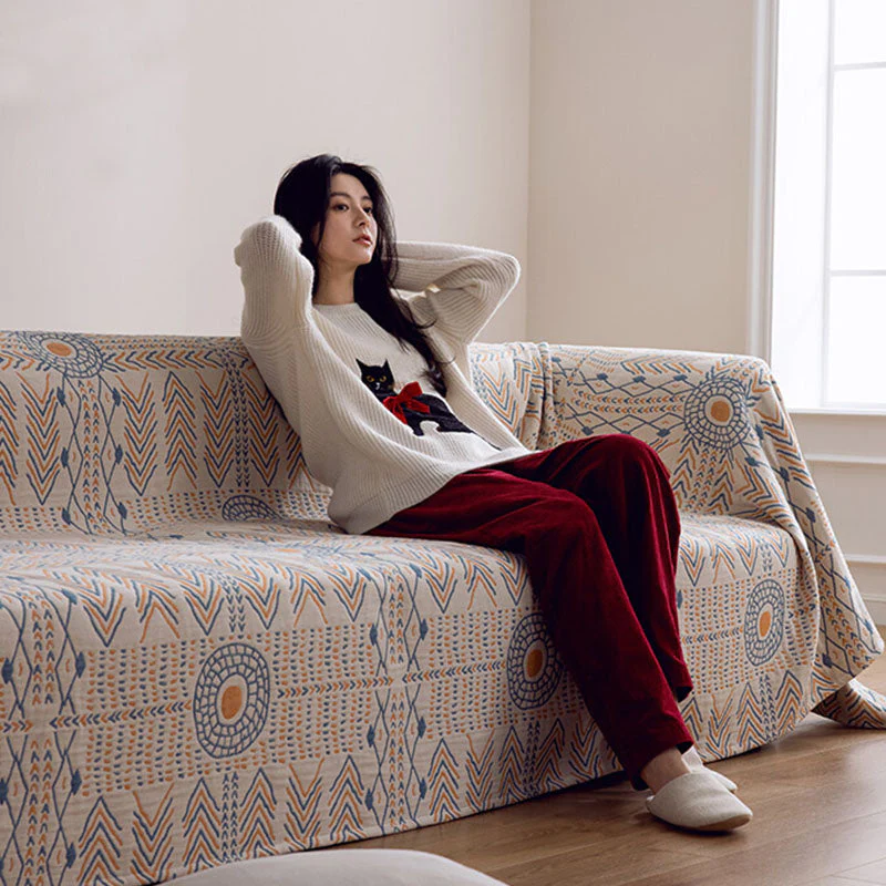 Cotton Striped Reversible Blanket Sofa Cover