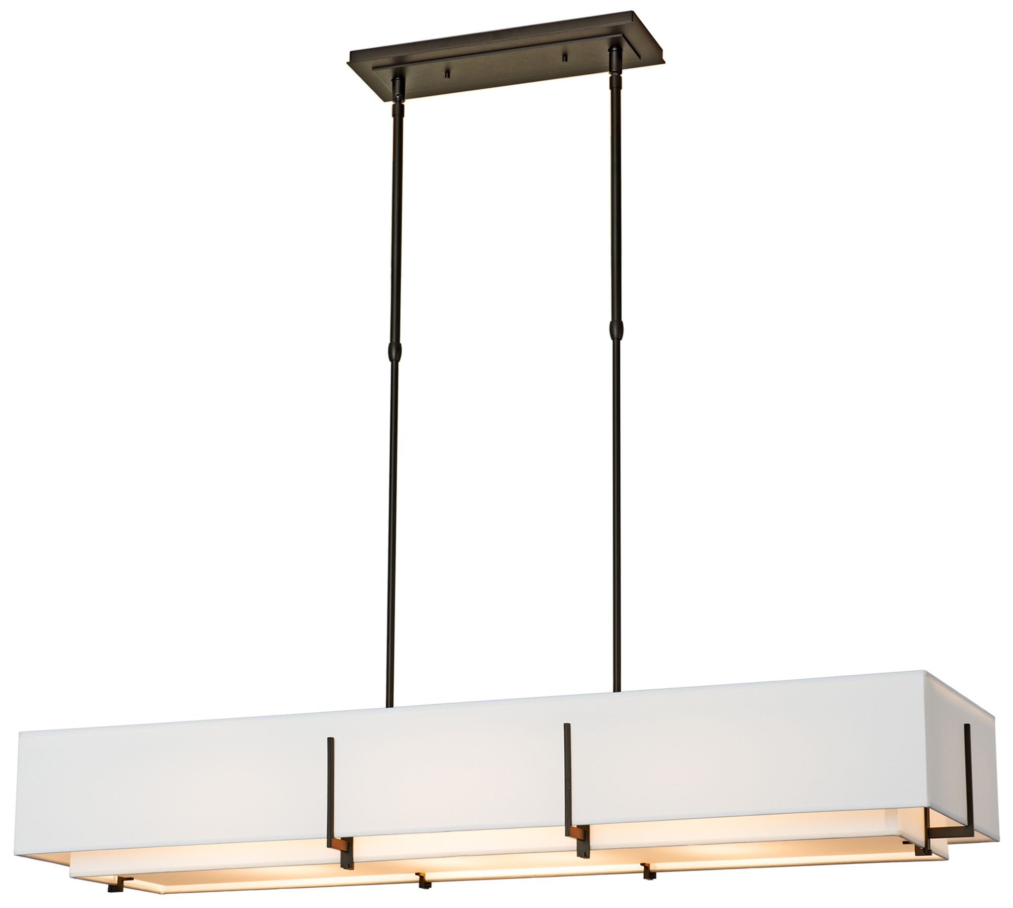 - Contemporary twelve-light linear chandelier from the Parisian collection by Zeev Lighting.
